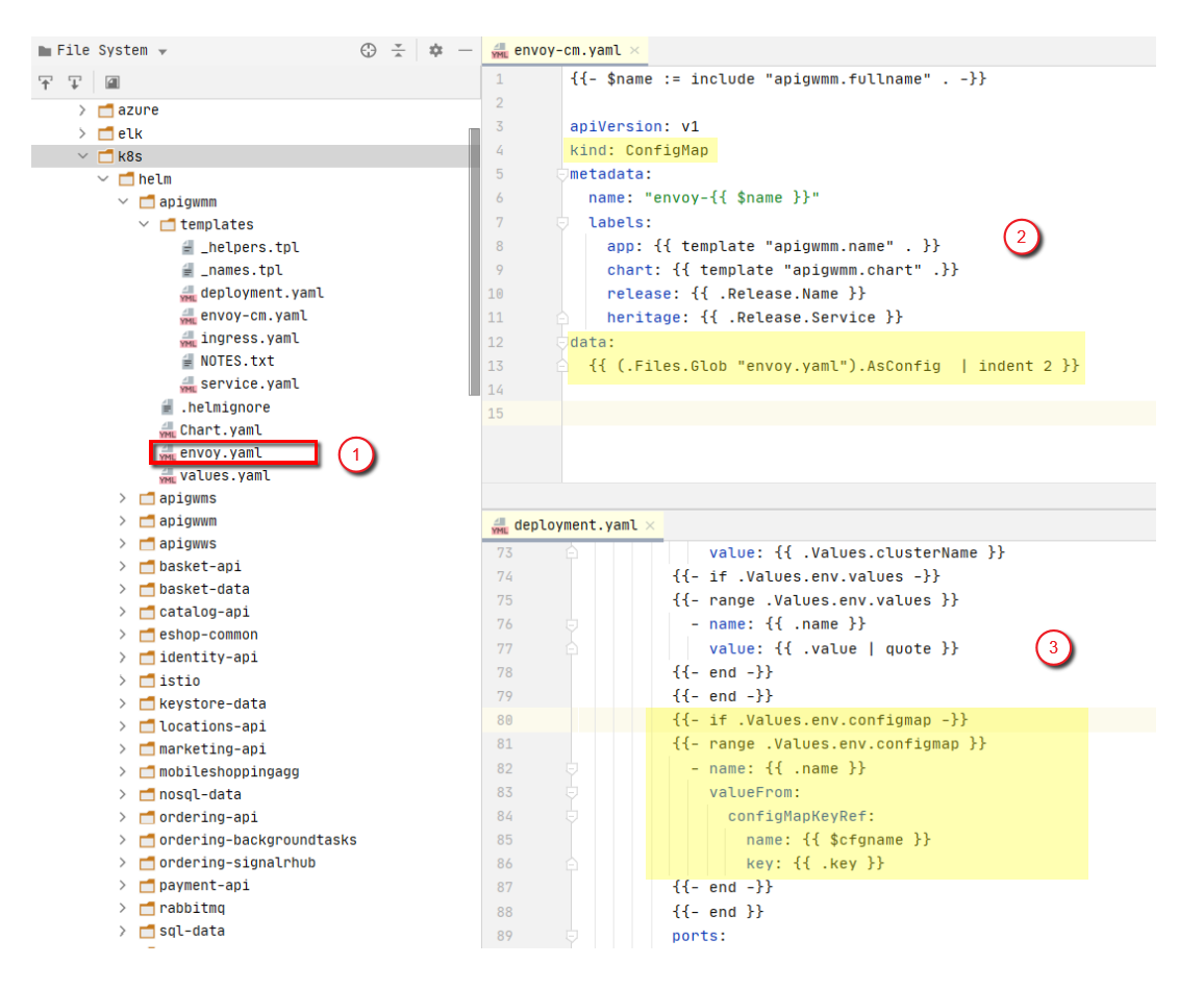 基于上面的基础,再来看eShopOnContainers中的配置,其实就很明白了,主要是配置文件从Ocelot 转变到envoy.yaml,配置如下图所示。