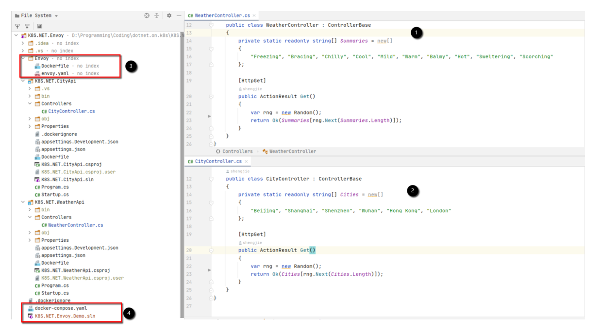 整体解决方案如下图所示。源码路径:K8S.NET.Envoy。