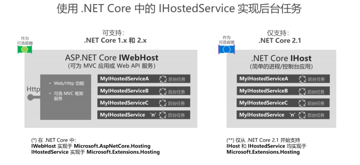 后台任务,顾名思义,后台静默运行的任务,也称计划任务。在.NET Core 中,我们将这些类型的任务称为托管服务,因为它们是在主机/应用程序/微服务中托管的服务/逻辑。请注意,这种情况下托管服务仅简单表示具有后台任务逻辑类。